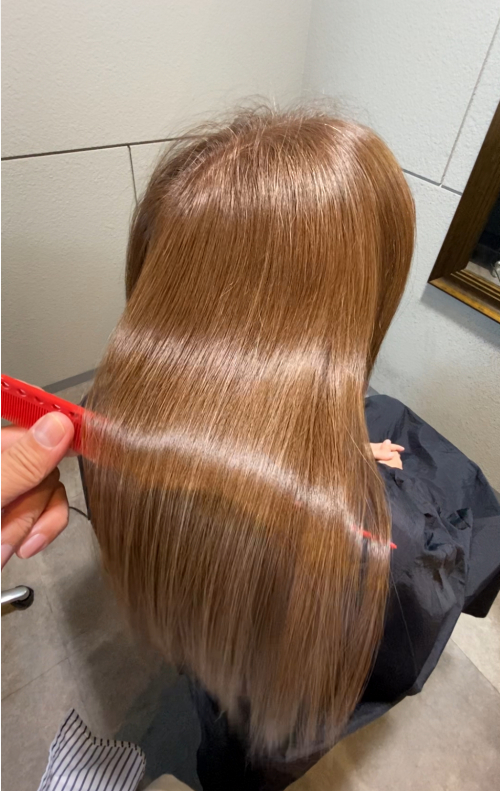 メテオの工程として、仕上げにストレートアイロンで熱を加えるのですが、トリートメント成分を固体化してくれます!